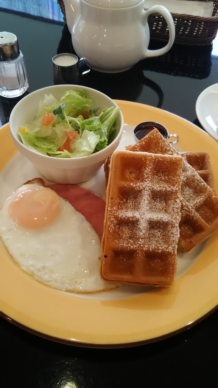 今回はハムエッグのお食事系ワッフルにしましたが、甘いワッフルも美味しそうでした。