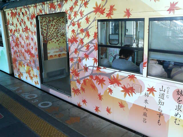 万葉集の和歌が描かれたラッピング車両が走ってました