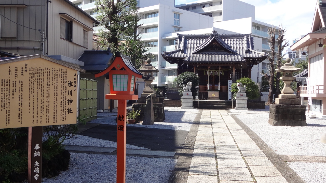 都電荒川線「面影橋」から面影橋を渡り北へ徒歩3分、南蔵院の向かいにあります。氷川神社はあちこちに多くありますが、この氷川神社は江戸時代には「氷川大明神」と呼ばれていたそうです。平安時代には在原業平が「東下り」の際に、こちらに立ち寄ったとか。境内の隅に古い一対の狛犬がポツンと向いあっておいてありました。