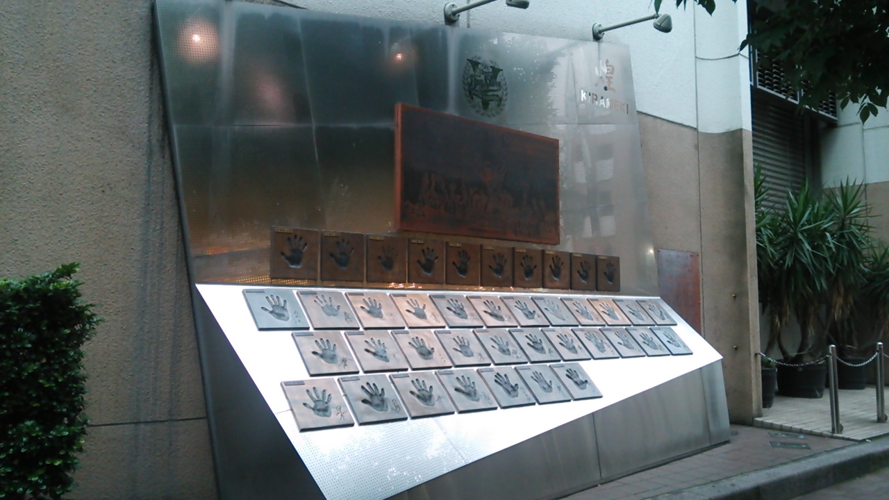 横浜スタジアムのすぐ近く、ベイスターズ通りの一角、東京電力の建物の脇にこの碑は立っています。1998年に日本一に輝いた横浜ベイスターズの40名の手形と、当時の選手会長石井琢朗さんの足形が床に設置してあります。もうあれから18年にもなるんですね。今でもファンがたまに訪れていますね。