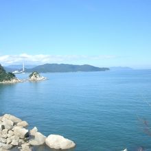 宮津市街から国道178号線を車で舞鶴方面へ10分ほど走ると、奇岩や絶壁が連なる美しい海岸に至ります。付近は“安寿と厨子王”の物語で知られる場所で、物語をもとに小説『山椒大夫』を書いた森鴎外文学碑もありました。海岸沿い道は、“安寿ロマン街道”と呼ばれていて、車窓からはきれいな風景を望むことができますが、駐車場が見当たらなくて少し残念でした。