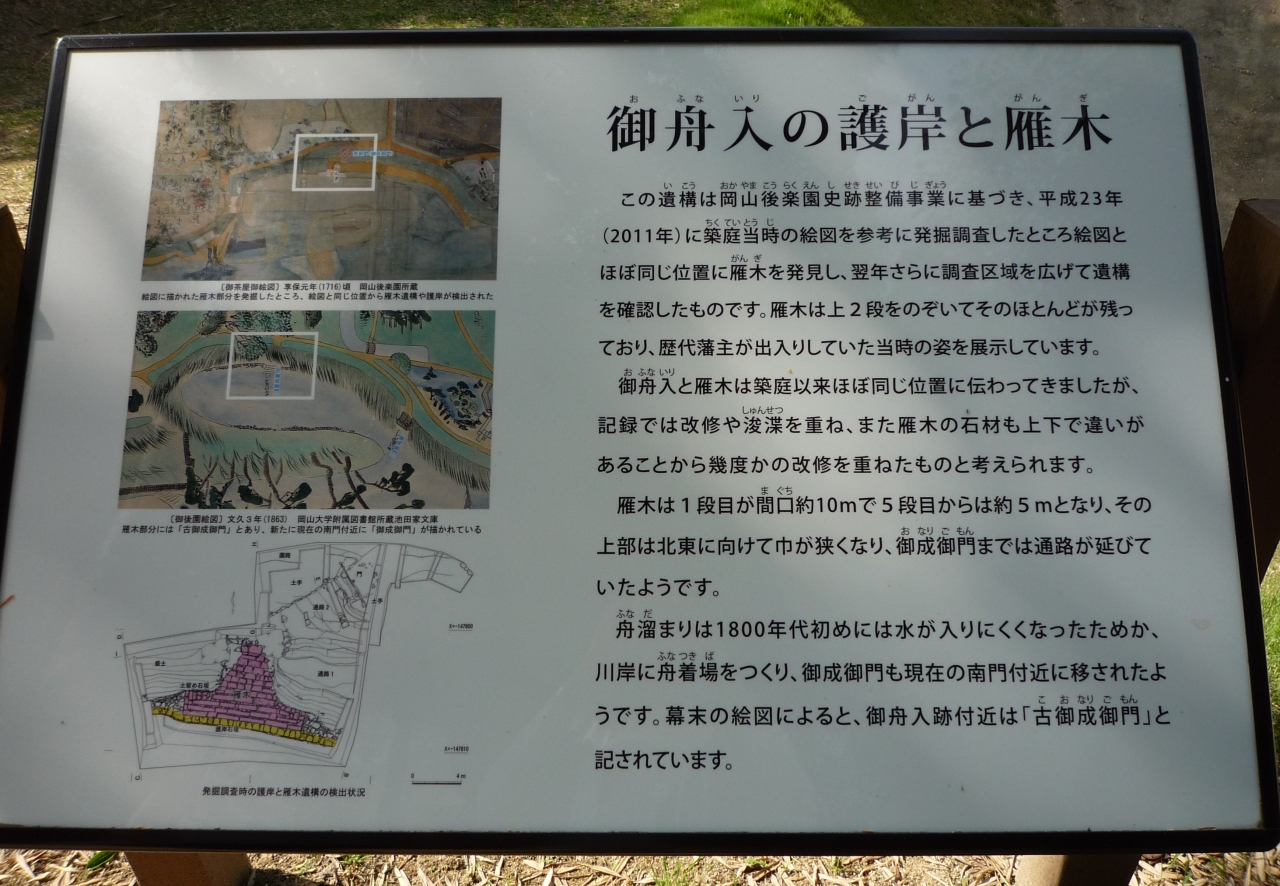 岡山城から藩主が舟に乗って旭川を渡ってきた時に利用した舟着き場の跡です。
