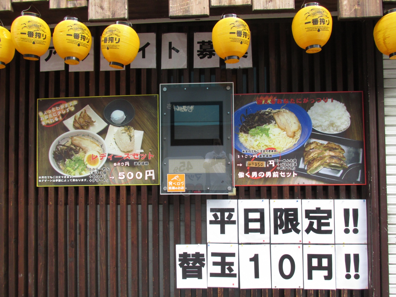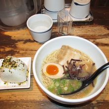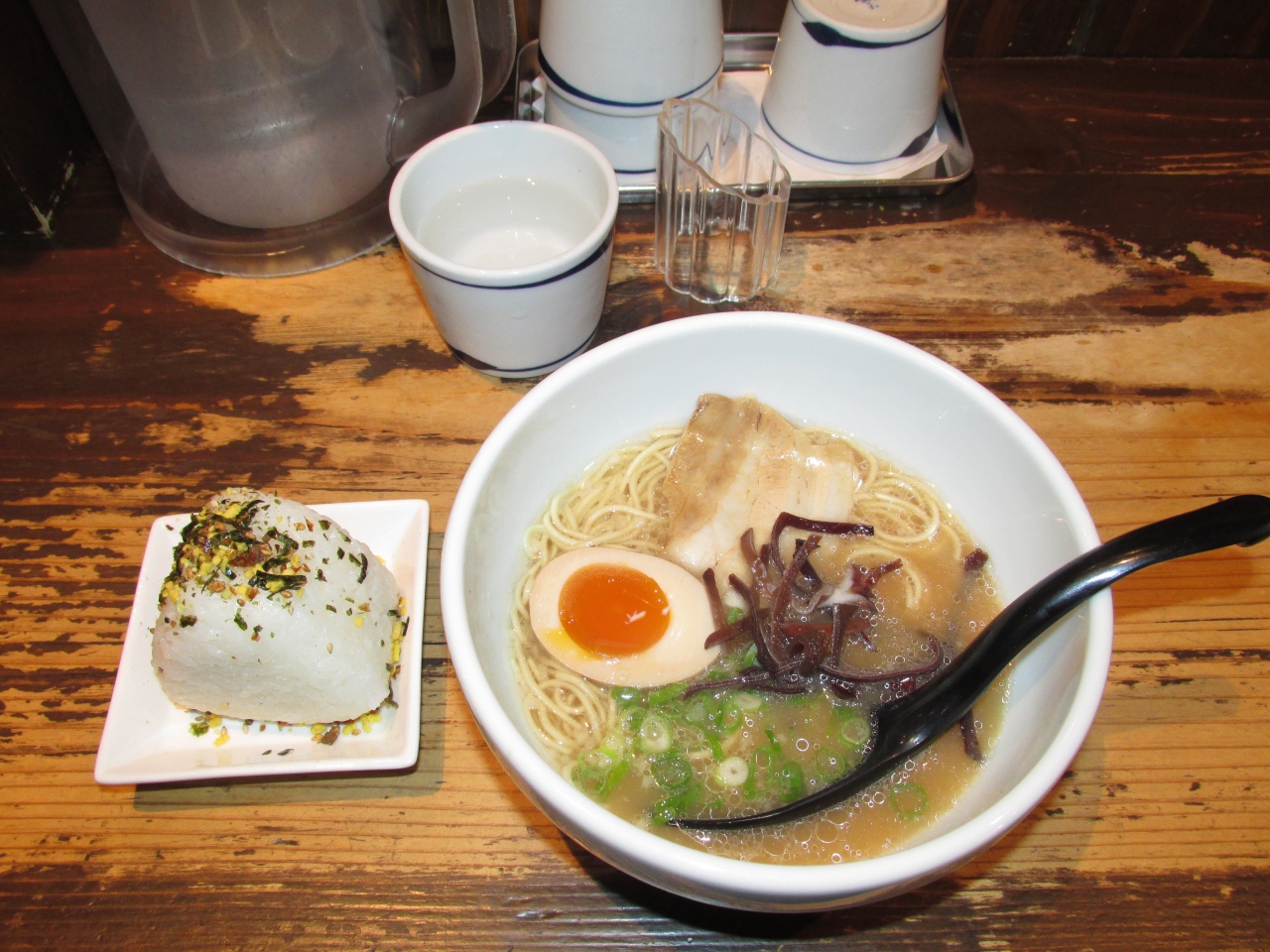 レディースセット500円という看板に釣られて入りました。お昼休みらしく、お客さんはいっぱい。活気のあるお店で、一人客でも嫌な顔ひとつしないでカウンターに案内してくれました。小ラーメン、おにぎり1個、餃子、アイスクリームで500円です。小食の方にはおすすめです。くどくなく美味しい豚骨ラーメンでした。