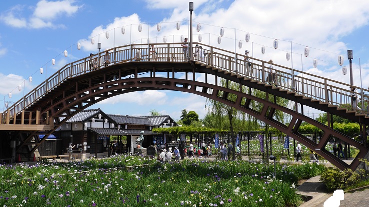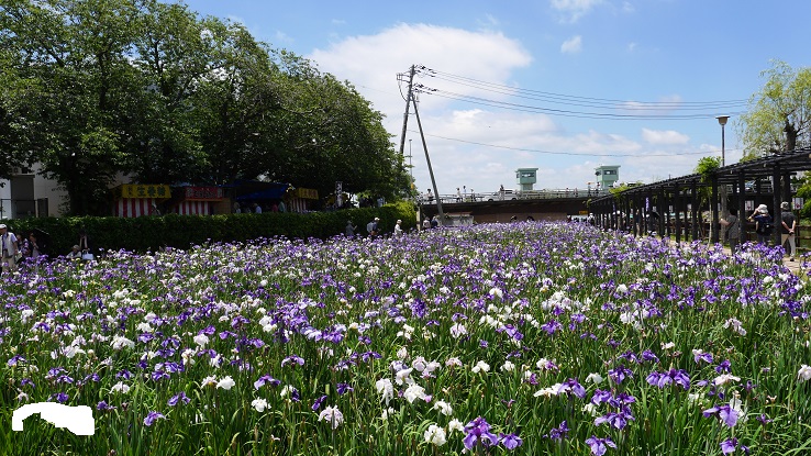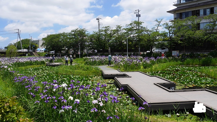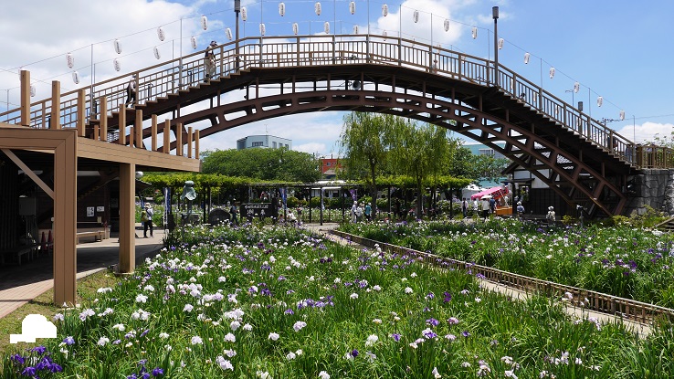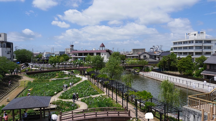 鹿島線潮来駅からほど近いところにあるあやめ園。川に沿ってアヤメ畑が広がる。6月の時期はびっしりとアヤメの花が咲き誇り見ごたえがあった。敷地はあまり広くなく、数百メートルの木道を端から端まで歩いても30分くらいので見て回れた。