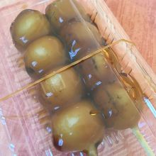 昔からある老舗の和菓子屋さんといった雰囲気を醸し出しています。ハロウィン前なのでお赤飯が50円引きでした。丁寧なお仕事をされているように見受けられる店内のポップ。豆大福とみたらし団子を頂きました。豆大福はほんのり塩気が効いていました。