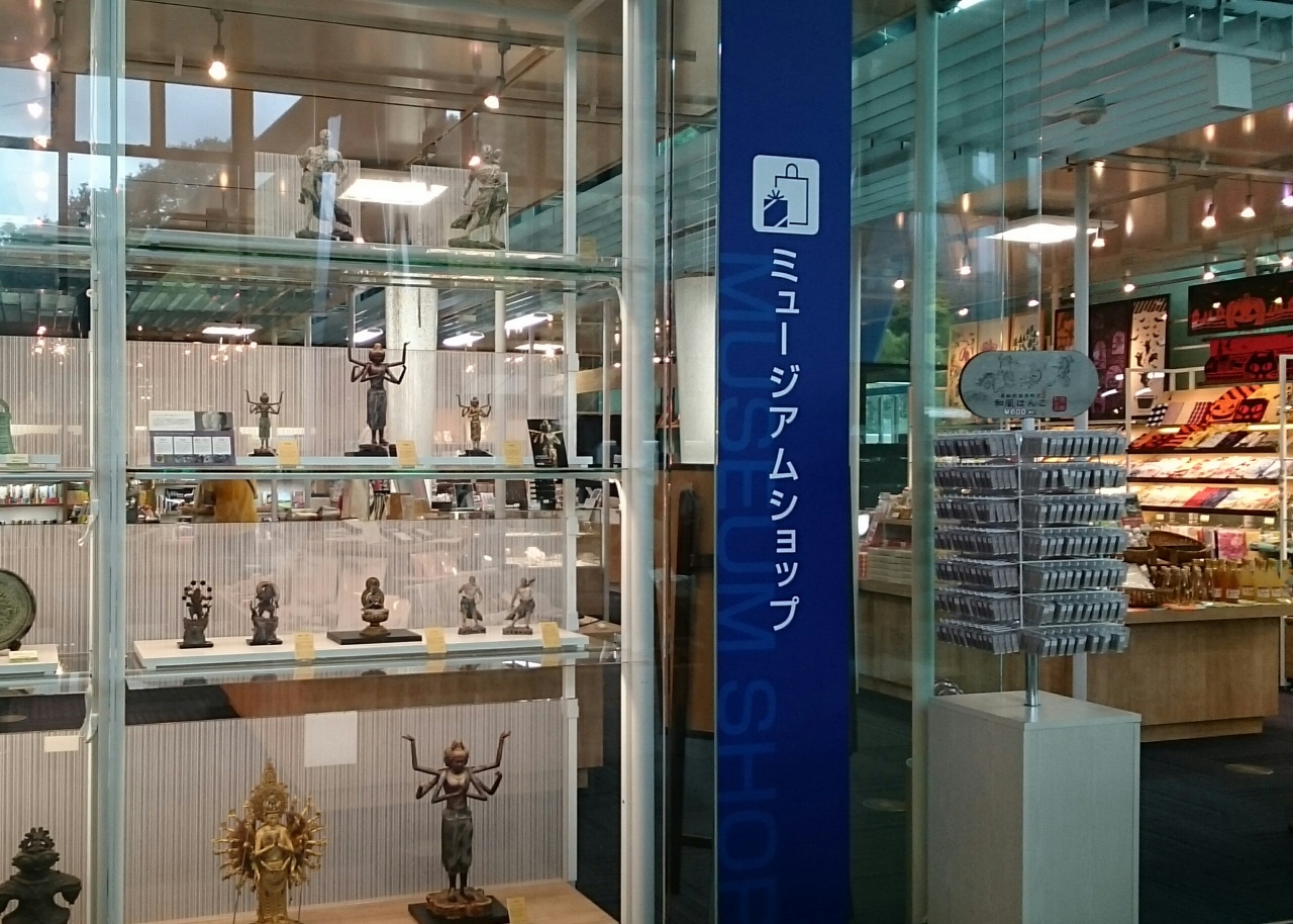 九州国立博物館1階エスカレーターの隣りにある「九博ミュージアムショップ」は、4階常設展示室に置かれていた「きゅーはくの絵本」をはじめ博多織で作られた品など地域の特産品や名産品によるオリジナルグッズが多く、独自性があります。