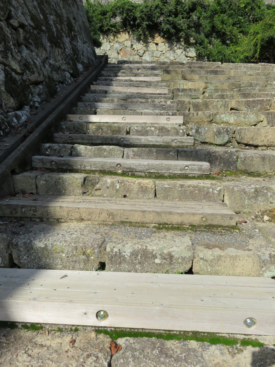 堅固な石垣が残る