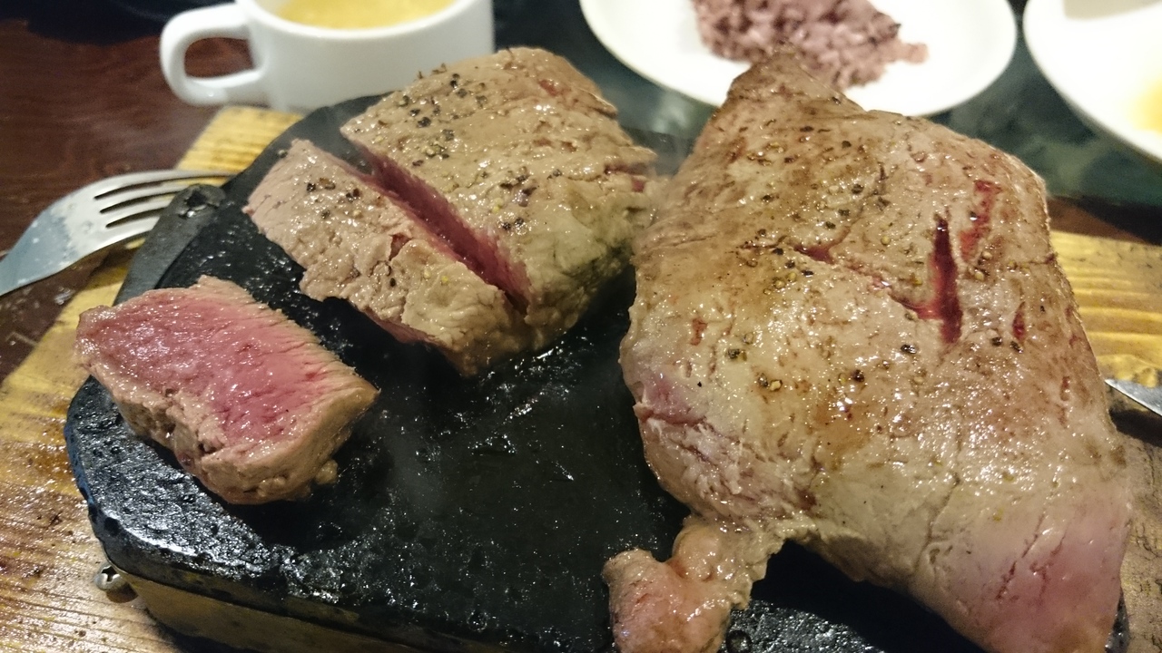 那覇のステーキ屋さんの新興勢力で、3店目にできたお店。国際通りのおきなわ屋の建物に入り、曲がったエスカレーターに乗り、2階のLAOXの目の前にある。まずは食券を買い、店内へ。お店はテーブル席中心ですが、カウンター席もあり一人客でも嬉しい。お客さんは地元の方の方が多く、外国人は少ない。オーダーから待つこと10分くらい。富士山の溶岩に乗った熱々のステーキがやって来ます。200グラム1000円からでかなりリーズナブル!替え肉も500円からあるなんて、沖縄って素敵!「やっぱりステーキ」のお肉は、程よい霜降りでジューシー。柔らかいお肉で、焼き方はレアで提供されます。先に切ってしまうのが良いかと。ソースはお馴染みのA1ソースに加えて、自家製オニオンソースや塩、にんにく醤油、刻みわさひ、シークワーサーポン酢など数種類を用意されています。さすがに替え肉はしませんでしたが、オーダーした300グラムはペロッと。また行きたいお店。あまり混雑が激しくなると行きにくくなるのて、これ以上有名になってほしいなぁ。サラダ、スープ、ライス食べ放題ですが、サラダは種類が少なく、マカロニサラダとキャベツの千切りのみ。御飯は黒米もあって健康的です。こんなお店が東京にも欲しい!
