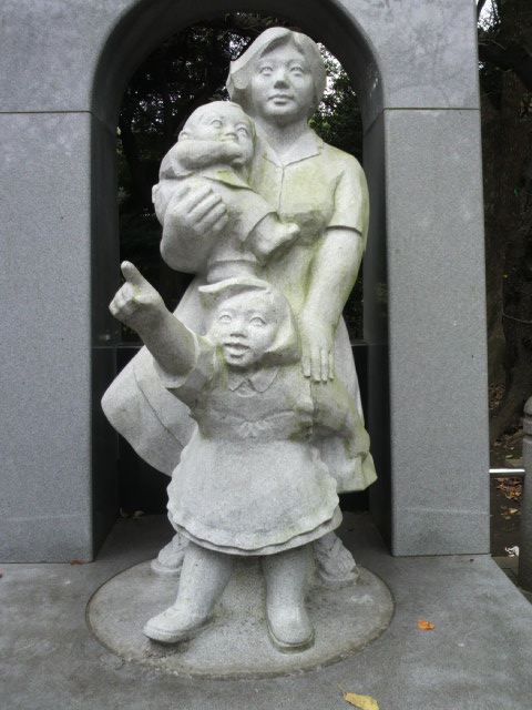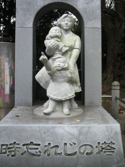 時忘れじの塔は、関東大震災や大空襲で亡くなったご家族がモチーフになっていて、安寧を祈念する母子像と時計塔からなっています。