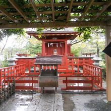 (実際には、源氏池の中に3つある小島のうちの一つに建っています)