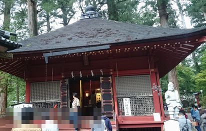 日光二荒神社の神苑内ににあります。招き大国様をお祀りしていて、奉納された刃渡り7尺に及ぶ太刀 などが納められていました。大国殿前には、人の心を丸くすする「円石」やお菓子の神様の像もありました。なんと社殿脇には「お菓子占い」のルーレットが置いてありました。お菓子屋さん寄進だそうです。