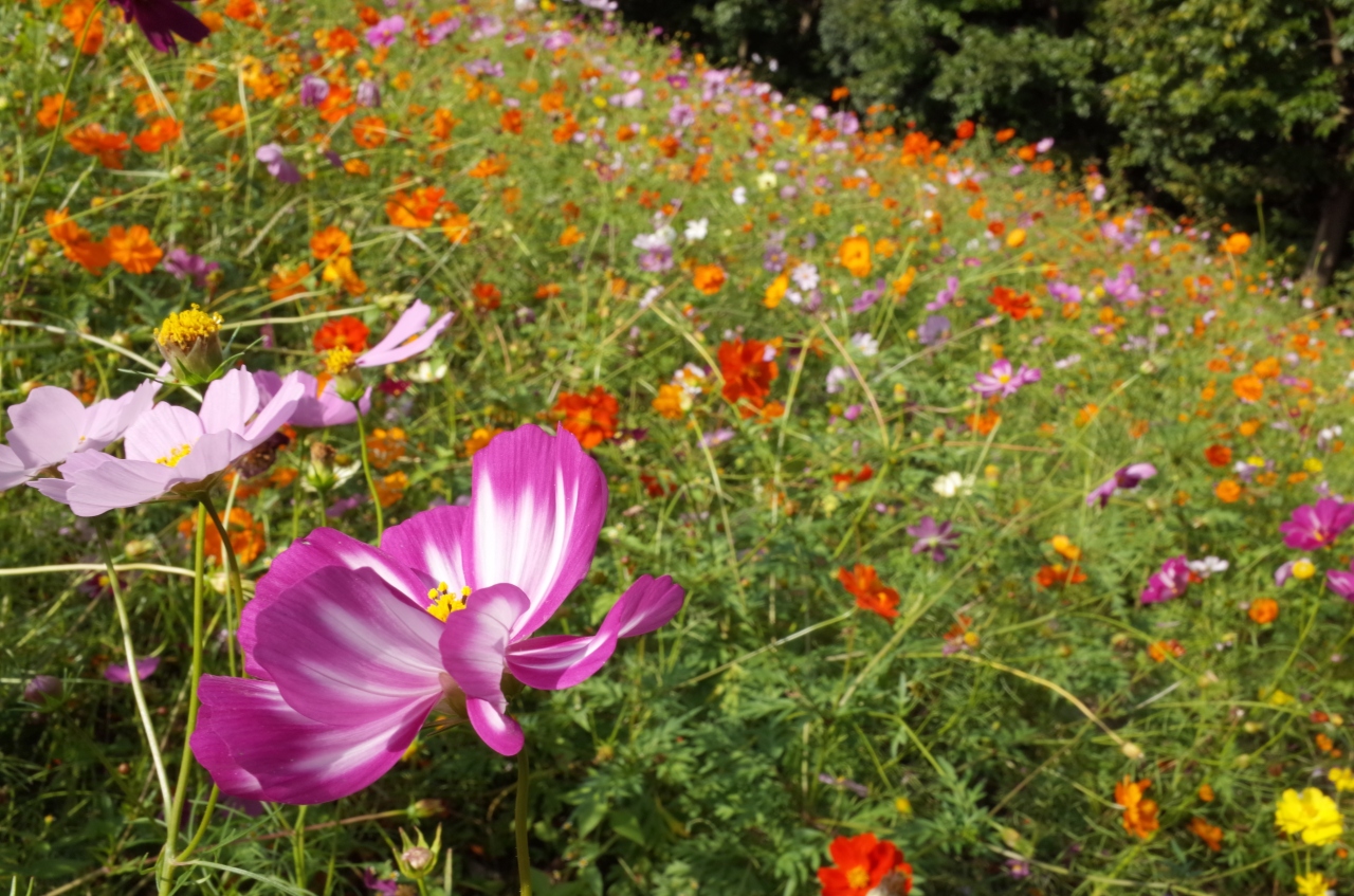 10/8-11/3まで、万博記念公園の自然文化園 花の丘で、コスモスフェスタを開催しています。