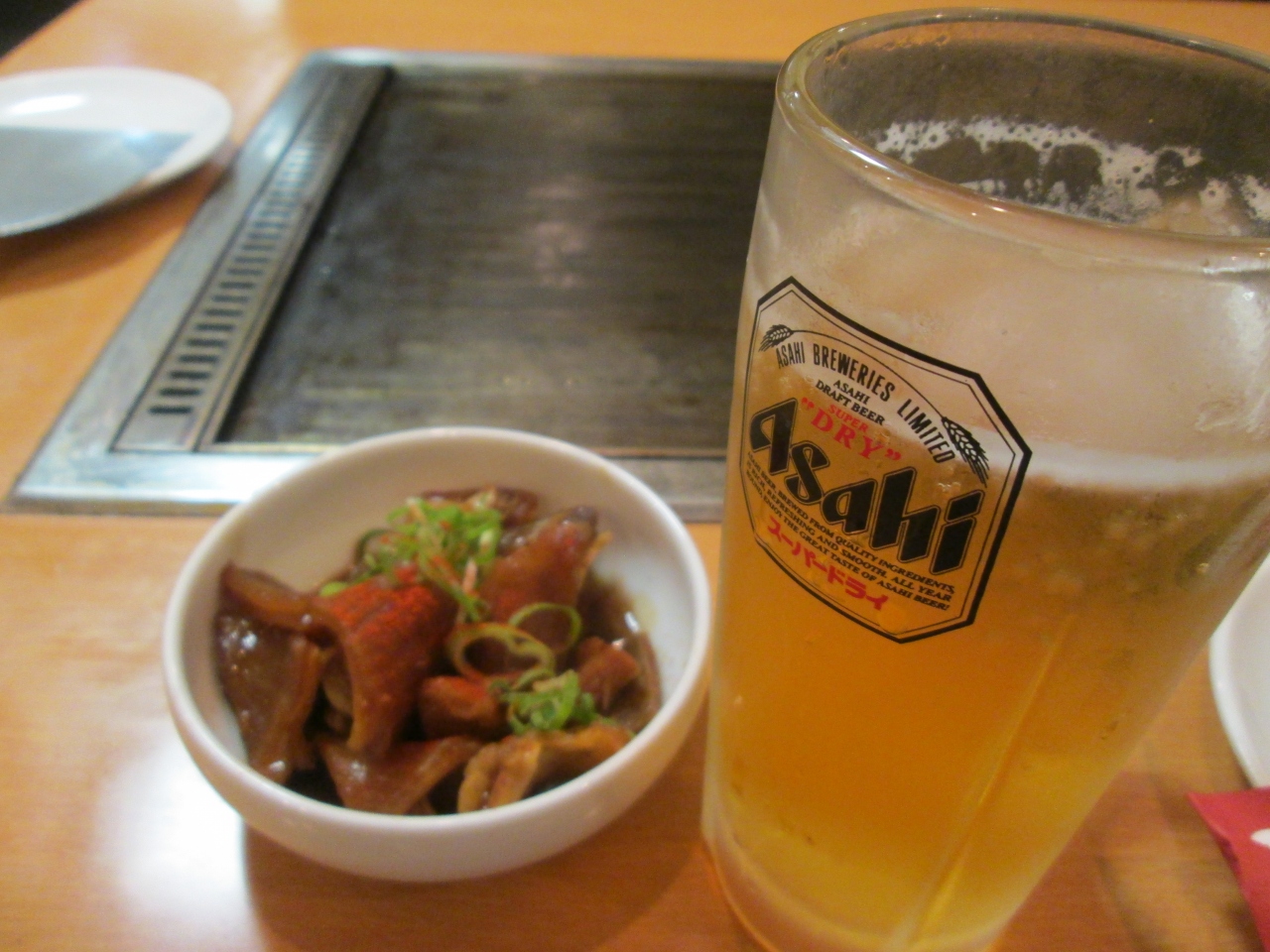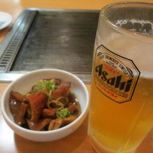 ねぎのせのブタ玉が焼き上がるまで、牛すじの煮込みでビールを楽しみました。