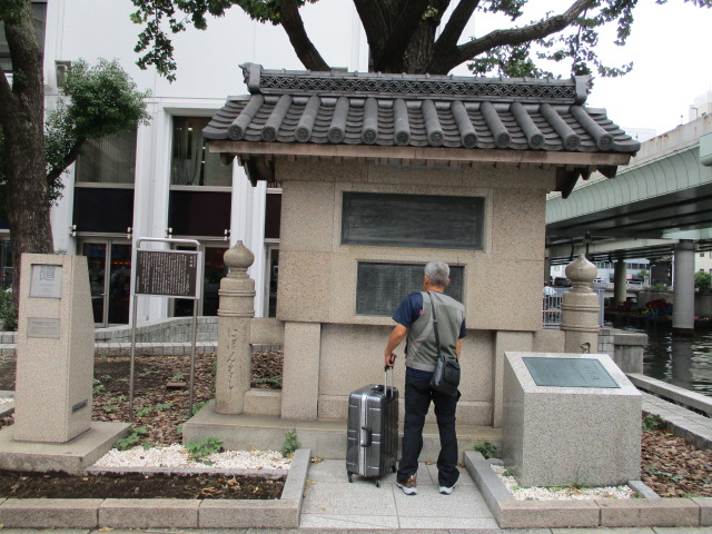 日本橋の南西詰めにある花の広場に日本橋由来記の碑はあります。日本橋由来記碑上部に広重の画、下部に日本橋の由来が記されていて1603年に橋が架けられ、翌年に諸海道の起点とされ、江戸の中心としての賑わい、1911年にに現在の姿にと記されてます。とても歴史の重みを感じます。若干文字が読みずらいのが残念です。
