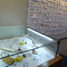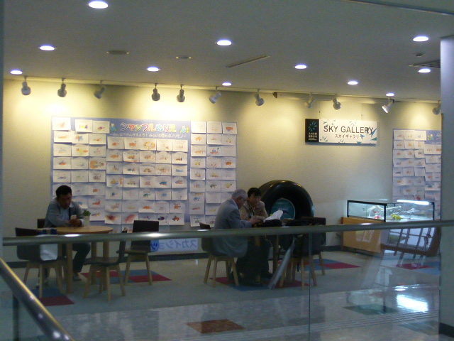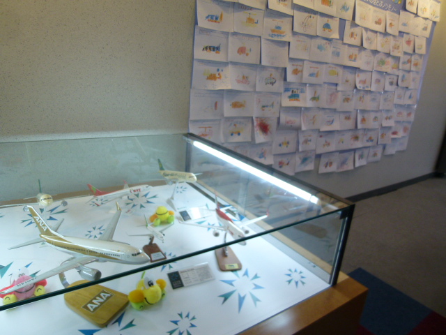 またここ「佐賀空港 スカイギャラリー」も最適ではないでしょうか。子どもたちの作品でしょうか「ぬりえ」が展示されていました。また運行されている飛行機の模型も、またデカイ、飛行機のタイヤも展示されています。