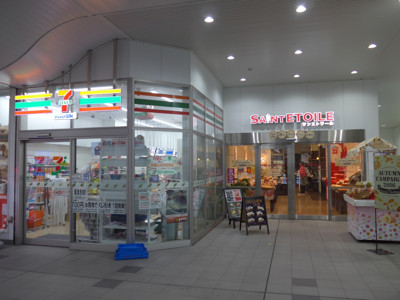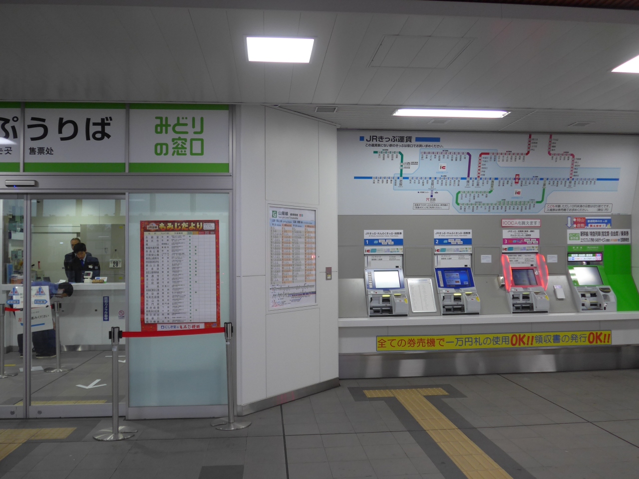 橋上化した改札口の向かって右側にみどりの窓口、券売機、コンビニのセブンイレブン、喫茶のサンエトワールがありエスカレーターで降りた1階にはおみやげ街道・西条をはじめ薬屋、飲食店がいくつかあります。