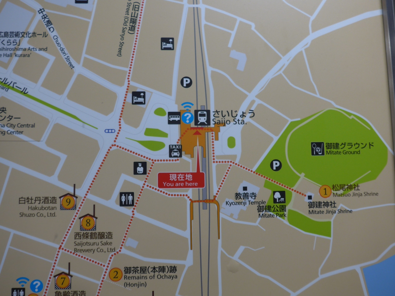 山陽本線の西城駅は広島県東広島市西条本町にあります。