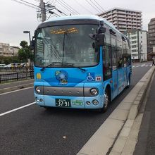 横須賀の観光循環バスです。京急の横須賀中央駅と軍艦三笠がある三笠公園の間を4つぐらいの停留所をぐるぐる回っています。京急の横須賀グルメ切符でも利用することができます。横須賀中央駅から三笠公園まで歩いて行けますが、このバスを使うと便利です。1乗車180円です。