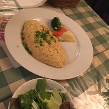 とりあえず普通にオムライス?と頼んだらこれが想像してたのと全然違った…せっかく調べたのだから最後までちゃんと確認すべきだった。卵とご飯が一体化していて、味はなんというか和風チャーハン的な。美味しいんだけど。子の希望に近かったのはこちらだとオムハヤシだったのかも。ハヤシライスはこちらは見た目も味も想像どおりに美味しかった。