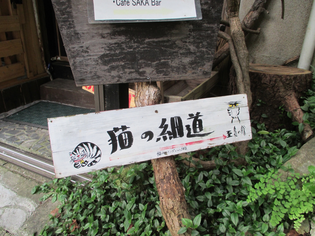 付近には猫関連の美術館、古民家カフェがあり、いたるところに猫の絵や景色に溶け込んだ福石猫が。