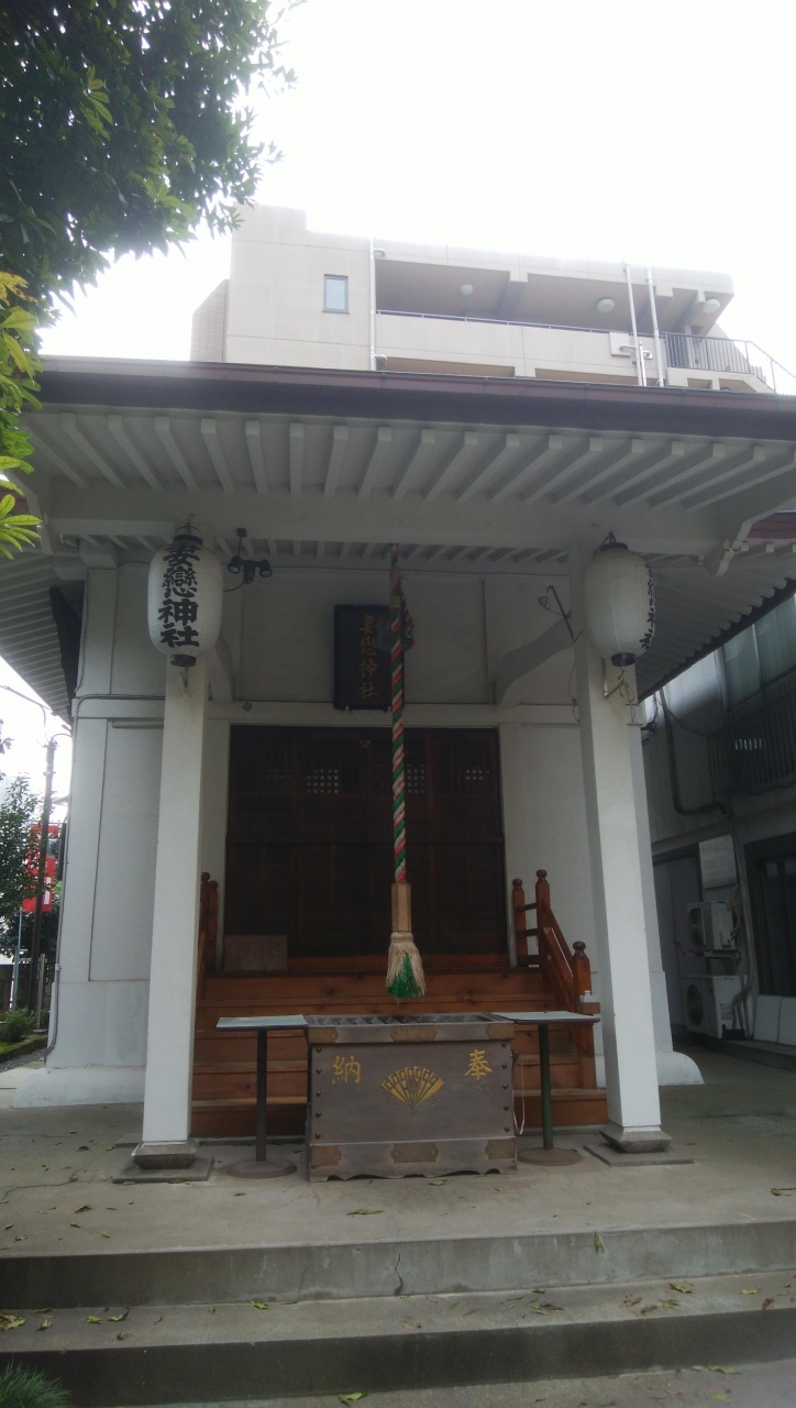 御茶ノ水駅から聖橋を渡って、そのまま北進して蔵前橋通りと交差する清水坂下の交差点のさらに一本先の路地を右折した、周囲にマンションやホテル、事務所ビルなど都心の典型的な場所にひっそりと建っています。御茶ノ水駅から徒歩7~8分ぐらいです。道路部分に鳥居がはみ出して建っており、珍しい感じです。そこをくぐり境内に入ると、左手に社殿があります。白色のコンパクトな社殿で神社としては珍しい色をした社殿です。祭神は倉稲魂命、日本武尊、弟橘媛命の三柱です。神田明神やサッカーミュージアムなど近隣のスポットを訪問した際に、あわせて立ち寄るかどうかだと思います。
