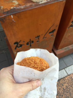 両サイドにたくさんのお店があって、どこも繁盛しているようでしたが、商店街自体は短いもので、食べ歩き程度では1時間を費やすことが難しかったです。午後3時くらいに訪れたのですが、あるお店では看板商品のメンチカツがありませんでした。コロッケもありませんでした。