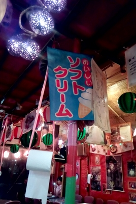 周りは真っ暗ですがここだけ明るくてプレハブ?テント?のようなお店の中はまるで縁日のように明るいです。