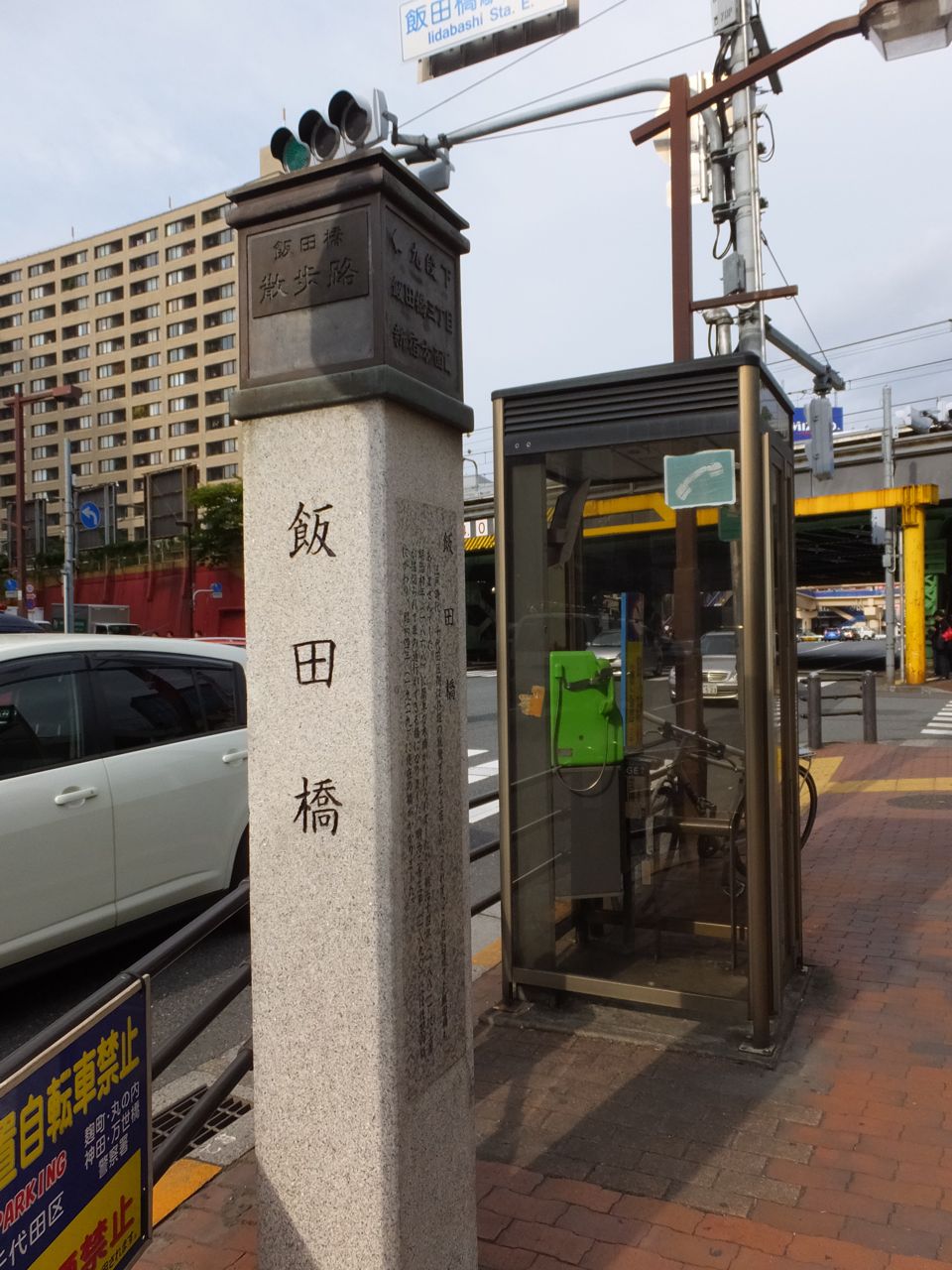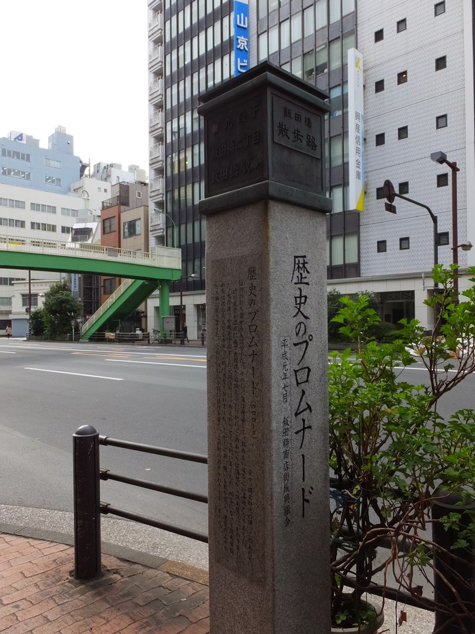 飯田橋駅から九段下駅に向かう道の歩道に13個の標柱と4個の歴史地図案内板が建っています。