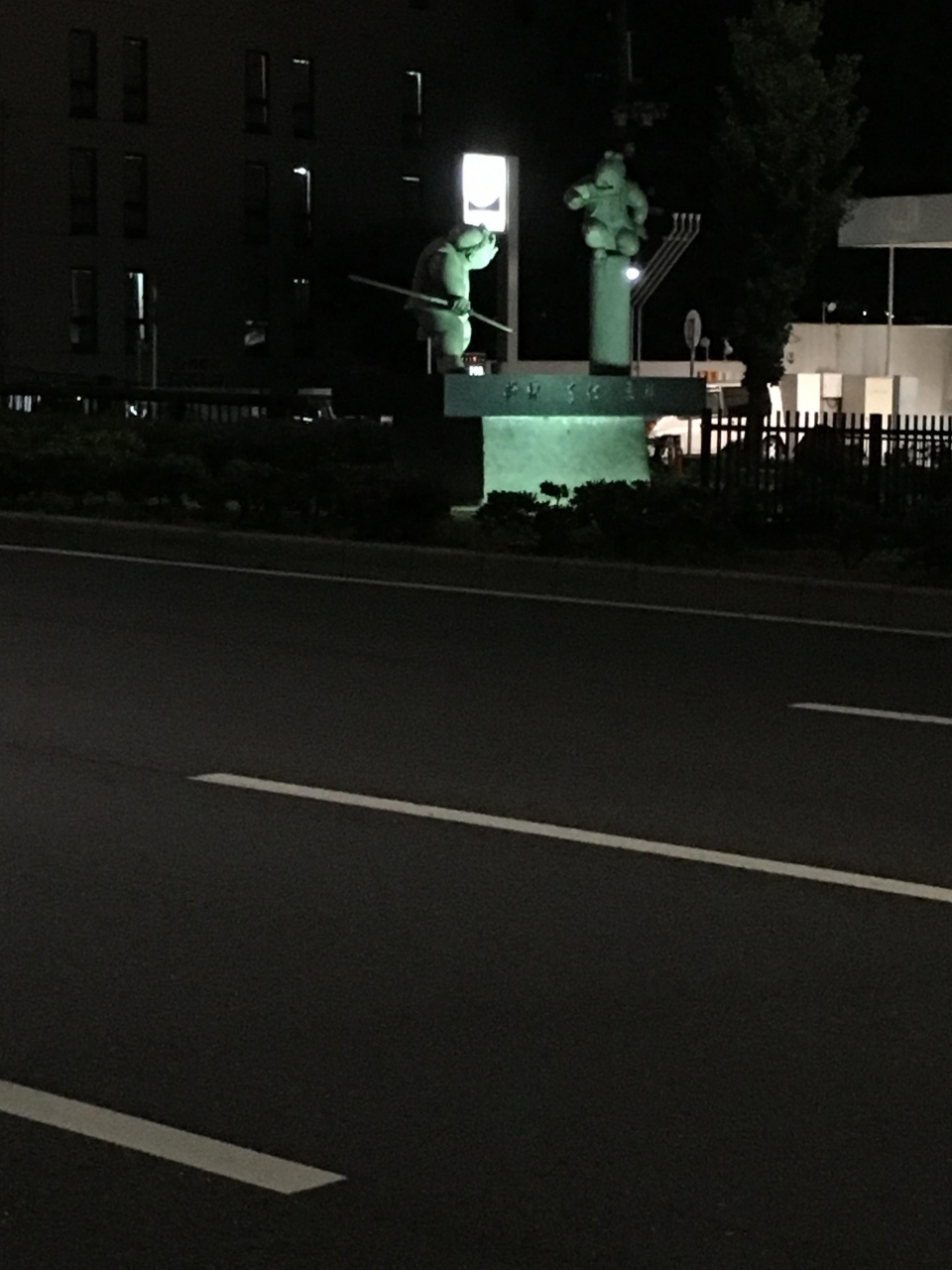 夜間、ホテルの近くを歩いていると、中央分離帯にあり、なんだかライトアップされているモニュメントを発見しました。