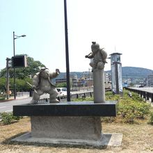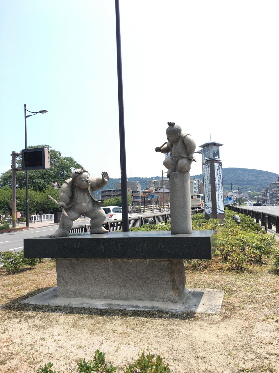橋の西詰めにある、有名なシーンをモデルにしたモニュメントですが、実物と違いすぎます。一度の青信号でここまで来てまた戻るのは無理なので、左右に行きかう交通量の多い中で写真を撮りましたが、中央分離帯にいるので目立っています。少し恥ずかしかったです。