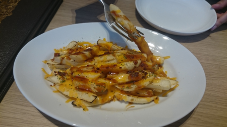 プーティンはフライドポテトにグレイビーソースとチーズ、それからベーコン乗せてオーブンでやいてある、カロリー的にもクレイジーな食べ物です(おいしい)