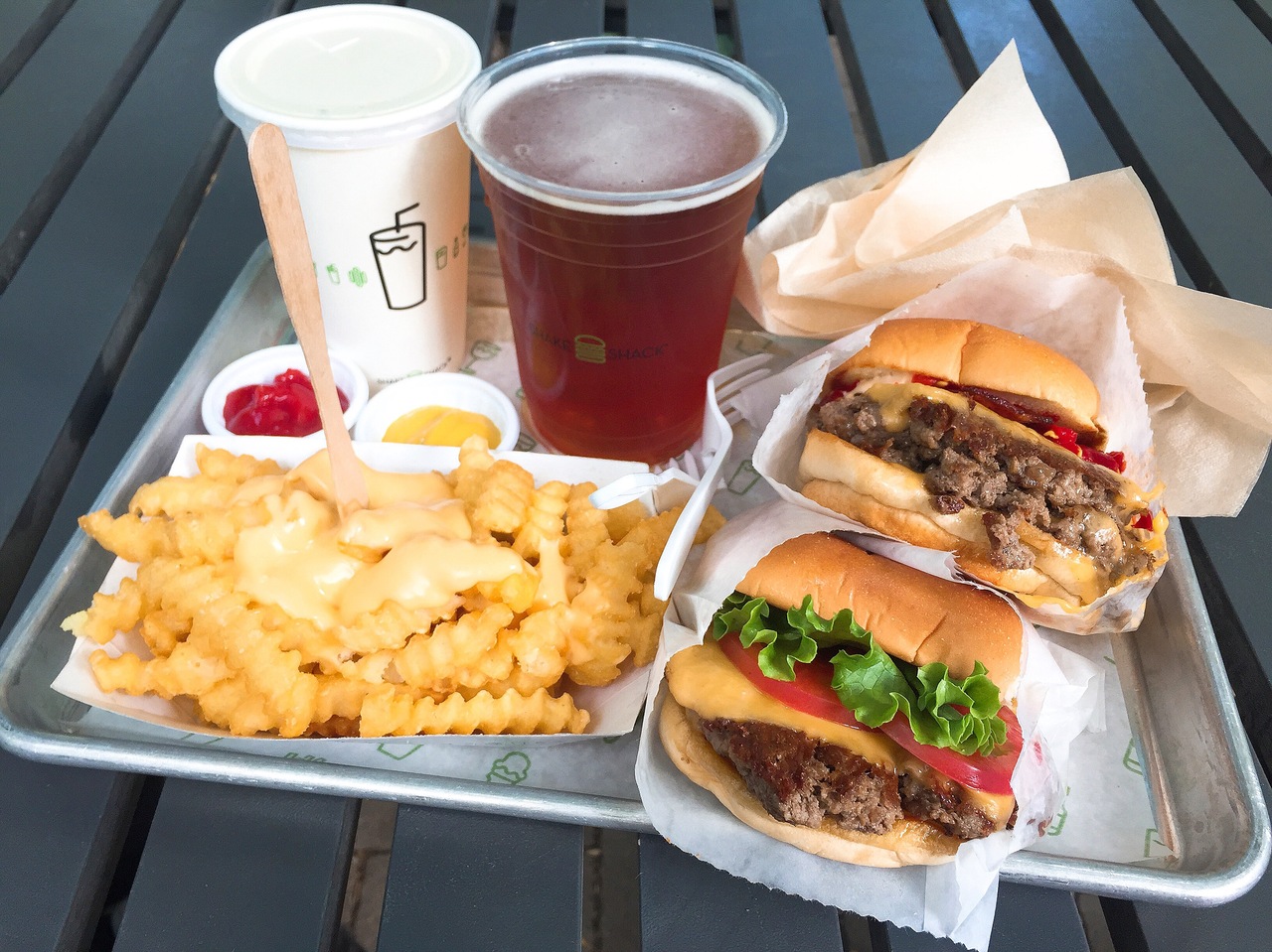 ニューヨークで人気のグルメバーガーショップです。オープンからしばらく経ち、平日の昼で待ち時間は15分ほどでした。今回はバーガーとポテトに、お店オススメのレモネードとビールを付けてオーダーしました。お散歩ついでに寄れる犬連れOKの有難いお店です。