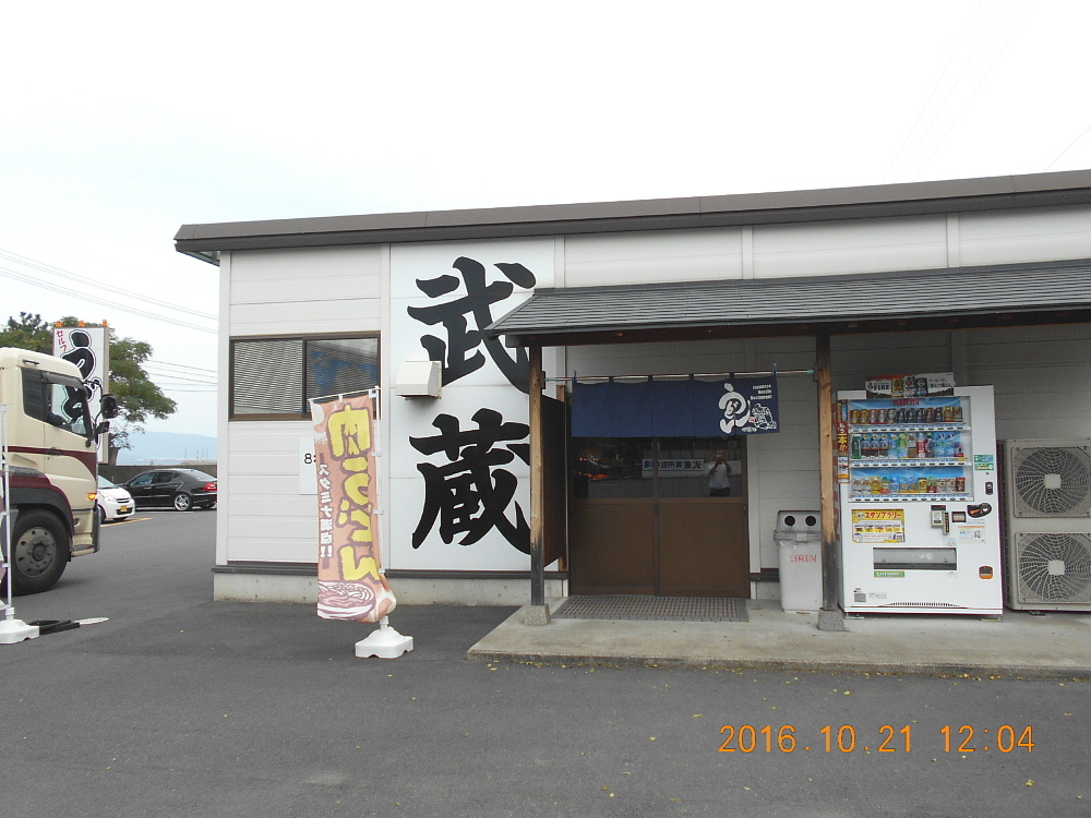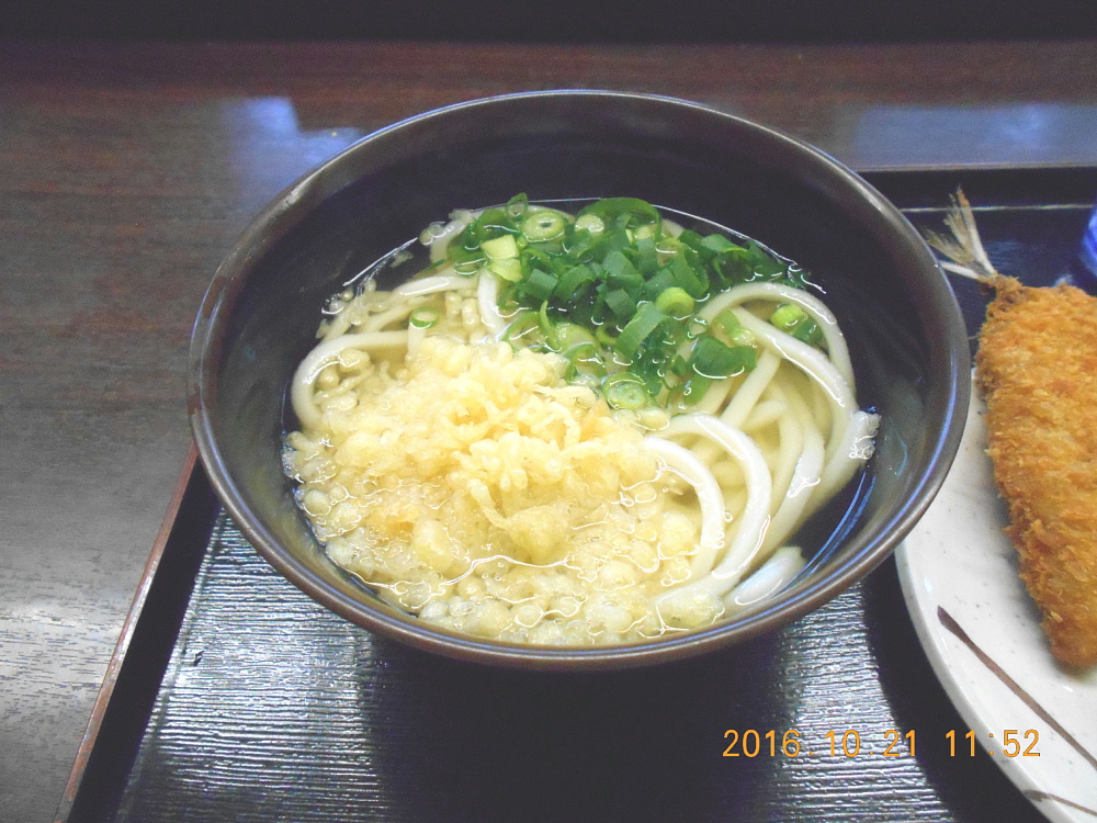 恒例の讃岐うどん巡りで国道11号線沿いの「武蔵」に行きました。駐車場が広いので難なく駐車出来ます。暖簾をくぐり店の中に。なんと広い店内でしょう。50席以上あるのでしょうか。今までない広い店内です。かけうどんの小(230円)を注文。大好きな鯵フライ(120円)と、げその天ぷら(120円)を取り合計470円です。ワンコインでおつりがきます。メインのうどんは出汁が讃岐うどんの特徴のいりこ出汁ですが、いりこ味がちょっと薄めです。食べ終わる頃にちょうどよい加減になります。コシは少し弱いかな。鯵フライは美味しいですよ。げその天ぷらは揚げて時間が経っているのか少し硬いです。