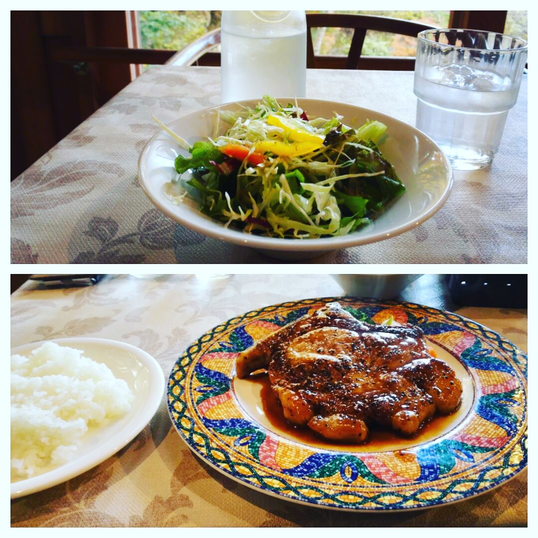 雲場池の紅葉を眺めながら食べる骨付きポークのステーキセット 美味でした!