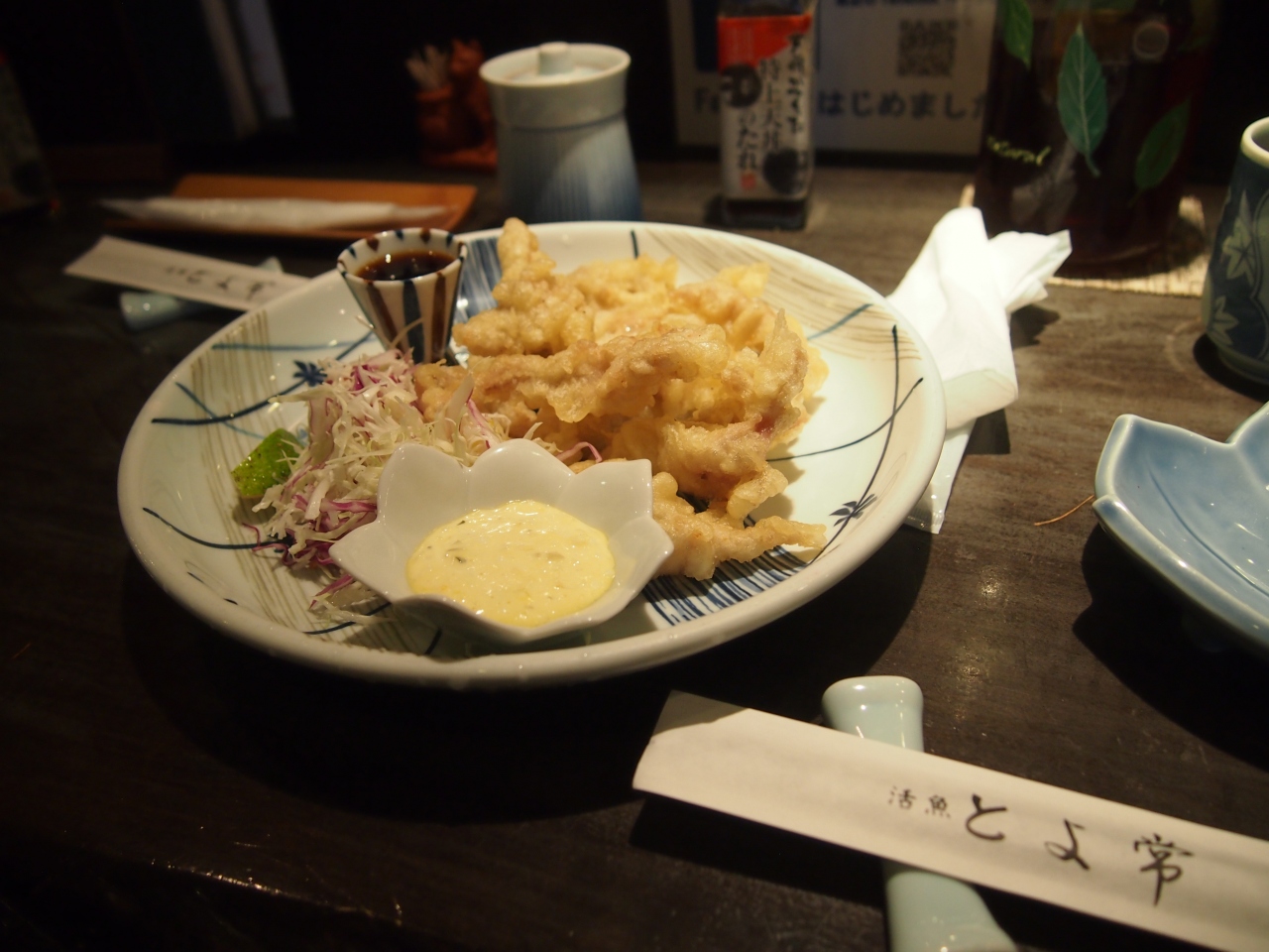 駐車場のおじさんに勧められてランチに行った。こぎれいな店構え。カウンター席と座敷席があり、結構満席だった。海老天丼のエビが大きく有名のようだが、あえて郷土料理のとり天を二人で一つ、各々ひゅうが丼を頼んだ。カウンターに座ったが厨房は活気がありてきぱきして、お客が多かったが待つこともなく料理が来た。とり天もひゅうが丼もおいしく、メニューにあるお刺身などを食べに夜に来るのもいいなと思った。