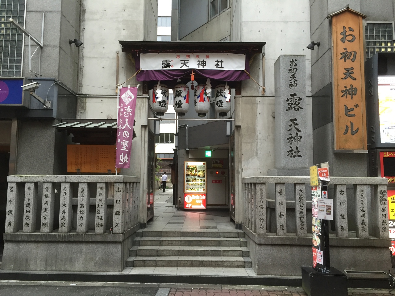「露天神社」とあるので、この「露天販売」の神様か何かと思っていたら、人形浄瑠璃『曽根崎心中』のモデルとなった場所であることを知る。周りがビルに囲まれた中にある神社で、街の中であるのに、神社の中は、ひっそりと静かな空間となっていた。