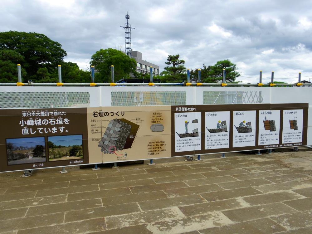 白河駅から徒歩すぐ、ホームからも良くみえます。東日本大震災で石垣・曲輪が崩壊してしまい、2015年4月まで入城できなかったとのこと。訪れた7月もまだ工事中のため城址内は少々ガチャガチャしていました。
