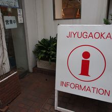 東急東横線の自由が丘駅からロータリー口を出て右手方向に進み、小道(鳥居があります)を右折して進んだ先にひっそりとあるインフォメーションセンターです。