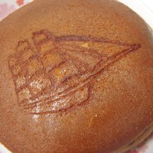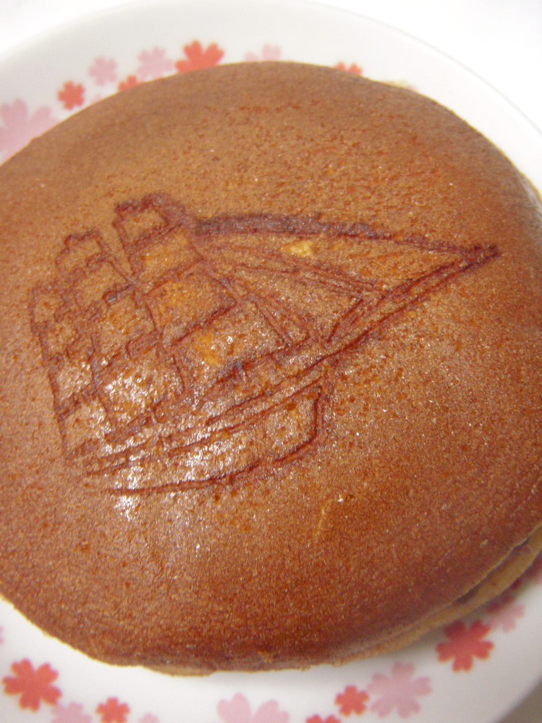 射水市の観光名所となっている大型帆船海王丸を前面に押し出したどら焼で、帆船の焼入れがしてある。