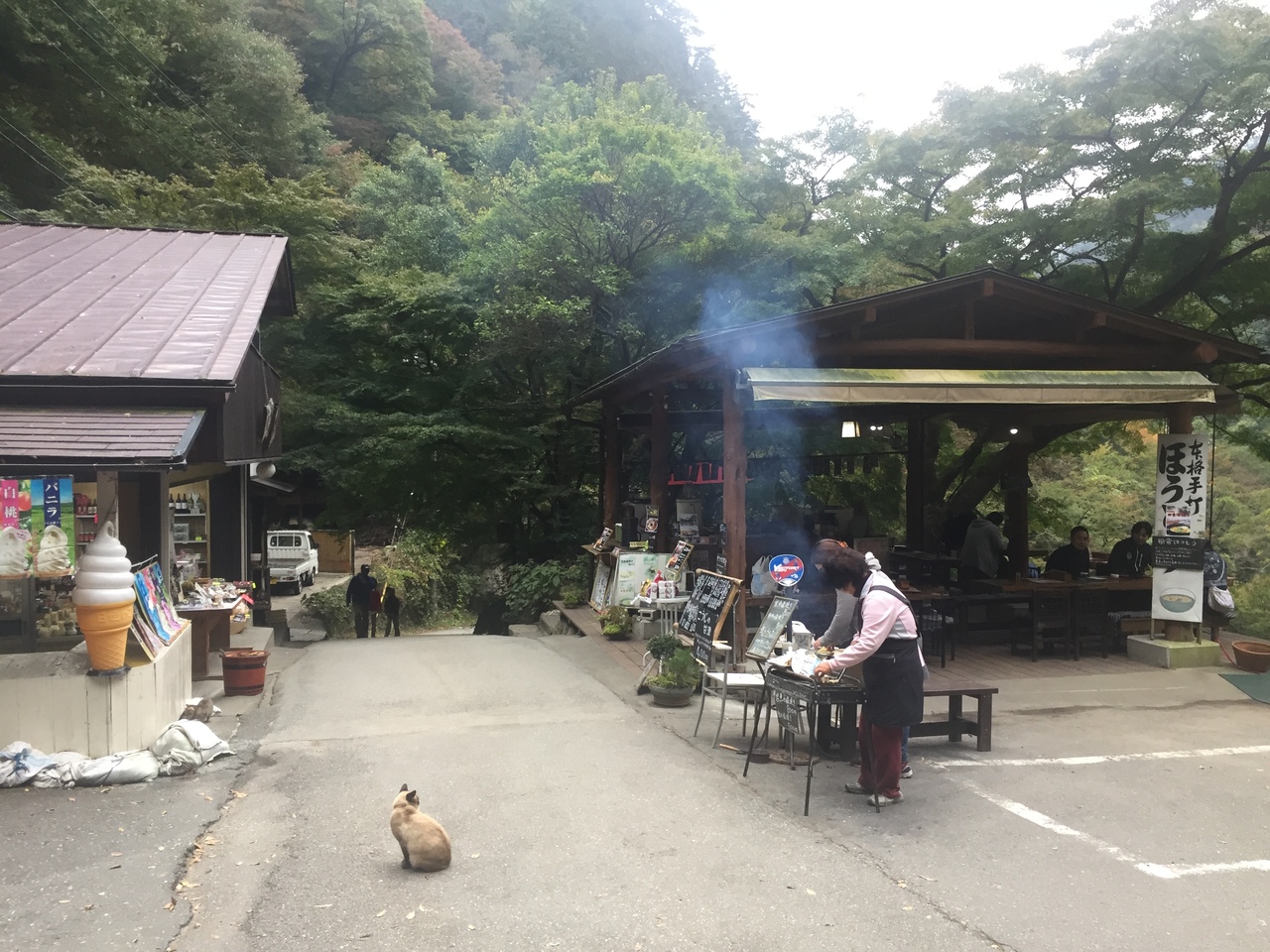 昇仙峡を散策しているとこの店に出てきます。岩魚や鮎を川を眺めながら食べることができ、とても趣があります。店の周りにはかわいい猫たちがおり癒されます。お汁粉やほうとうなどもあり、散策の合間の一服にちょうどいいです。ちなみに岩魚は1匹800円です。