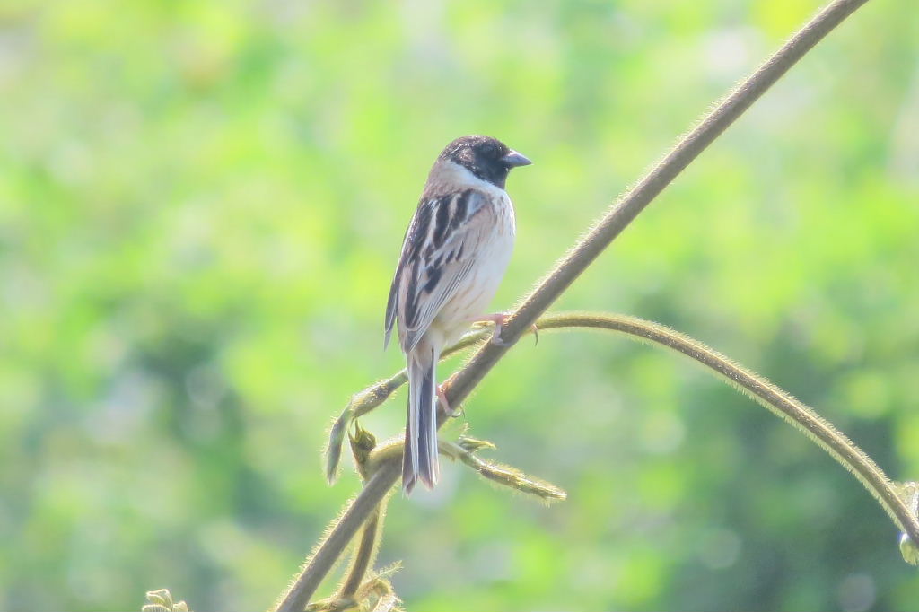 コジュリンのオスの夏羽は、黒い頭巾をかぶったような頭部をしているので、茨城の方言では、ナベカブリ(鍋かぶり)とも呼ばれています。