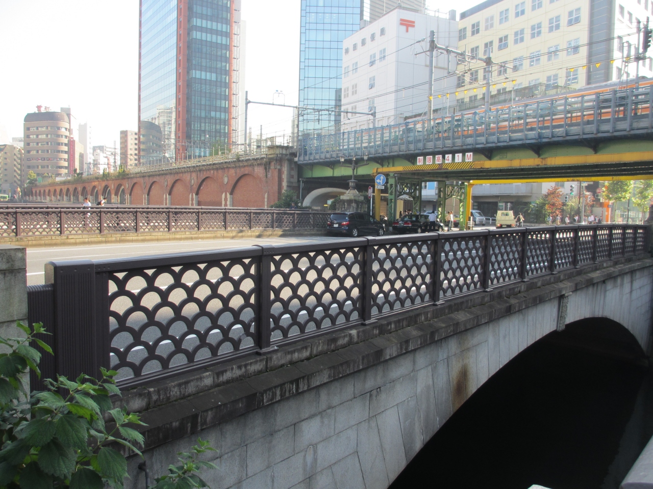 神田川と外堀通りが交わるところに架かっている25mほどの橋です。時代によっては相生橋と呼ばれたり、昌平橋と呼ばれたり、何度となく名称が変わってきました。今の橋は造られてから90年、昌平橋と呼ばれるようになって120年近くになります。1600年代に最初に架けられて以来、架け替えられたものの東京の歴史を長く見てきた橋です。出来ることなら東京の移り変わりや出来事を尋ねてみたい気がします。今は交通量が激しく、都心になくてはならない幹線道路上にある大切な橋になっています。