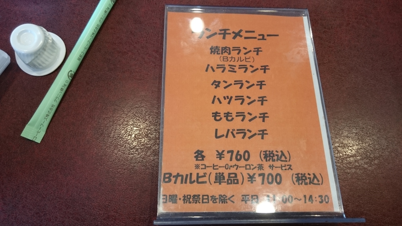 平日ランチ、ハラミランチ、タンランチ、ハツランチ、モモランチ、レばランチ。