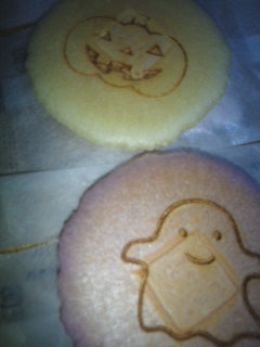 表にハロウィンの焼き印、裏はちょっとアイシングみたいなのがかけてあってほんのり甘いです。