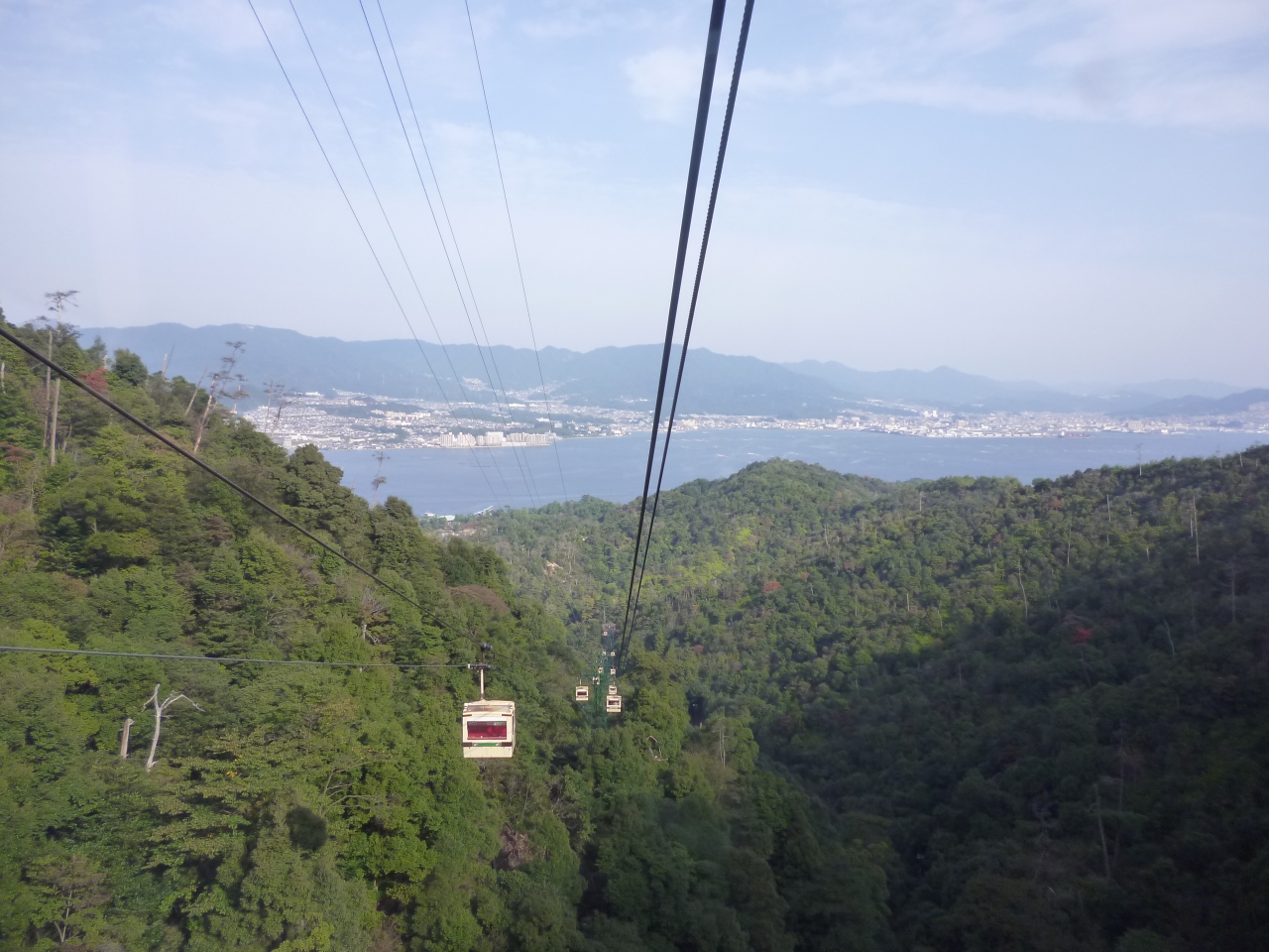 日曜日だったので、混雑を予想して、9時に乗車しました。5分待ちぐらいで乗れました。高くまで上ってくれます。よく晴れていたので、海がキラキラ輝いていて最高でした。ふもとに下りると、やっぱり長蛇の列でした。早く乗って良かったです。