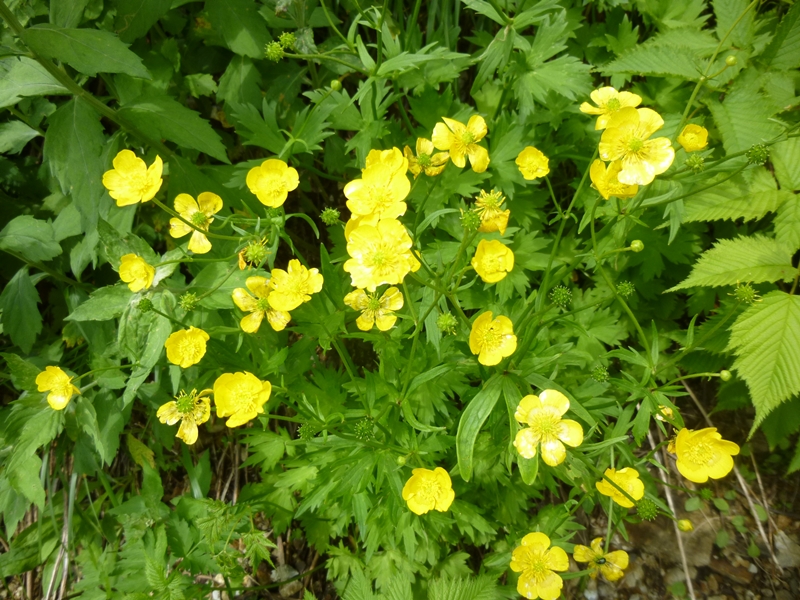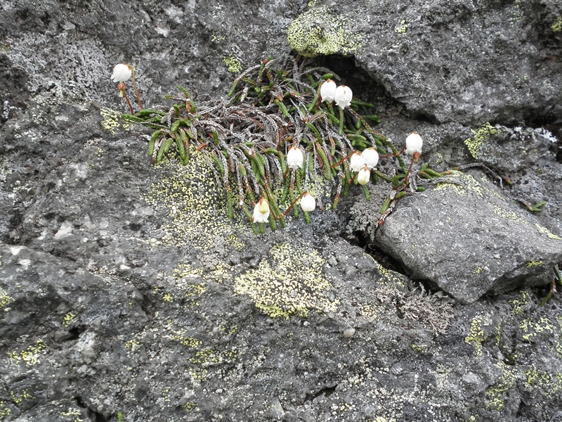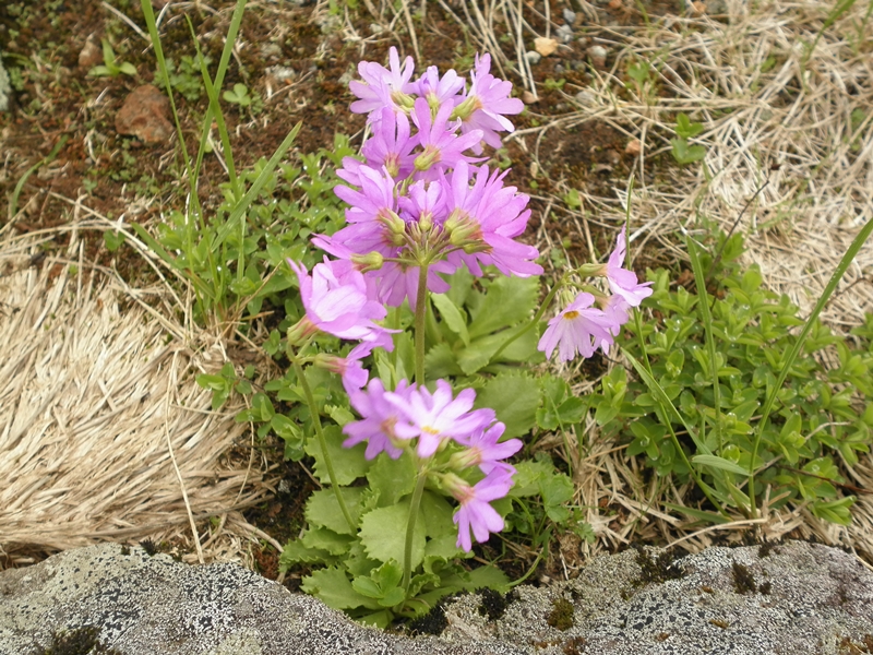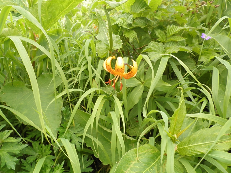 南竜山荘から~室堂ビジターC~お池巡り~御前峰~室堂ビジターCまでの至るところで,代表的なものでもシナノキンバイ、ショウジョウバカマ、ナナカマド、コイワカガミ、ミヤマキンバイ、チングルマ、ハクサンコザクラ、キバナコマノツメ、ゴゼンタチバナ、ヨツバシオガマ、オオヒョウタンボク、クロユリ、イワヒゲ、イワツメクサ、イワギキョウ、ハクサンフウロ、クルマユリ、アラシグサ、ミヤマガラシ、ミヤマガラシ、ミヤマキンポウゲ等40種以上の高山植物が迎えてくれました。イワヒゲには初めてお目にかかりました。種類、数量の多さに圧倒されました。ほとんどの花の香は好ましいのですが、クロユリの花の香はチョット(臭い?)です。一度嗅いでみてください。またクロユリは雄蕊のみの花、両性花の2種類あるそうです。