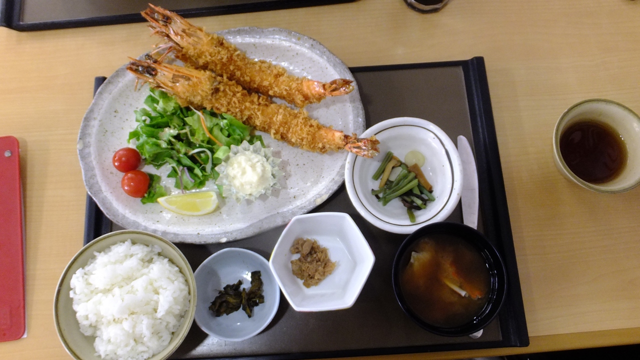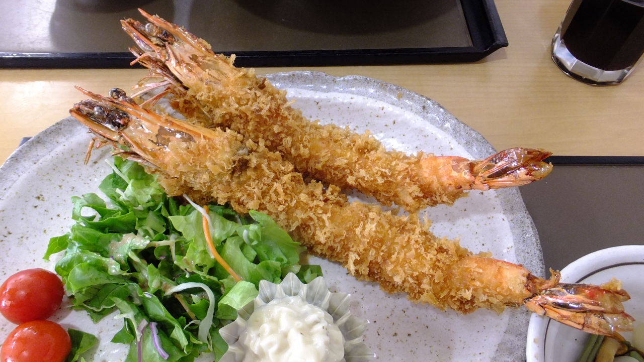 割合行列の少ない店で入店。ジャンボエビフライ1500円。