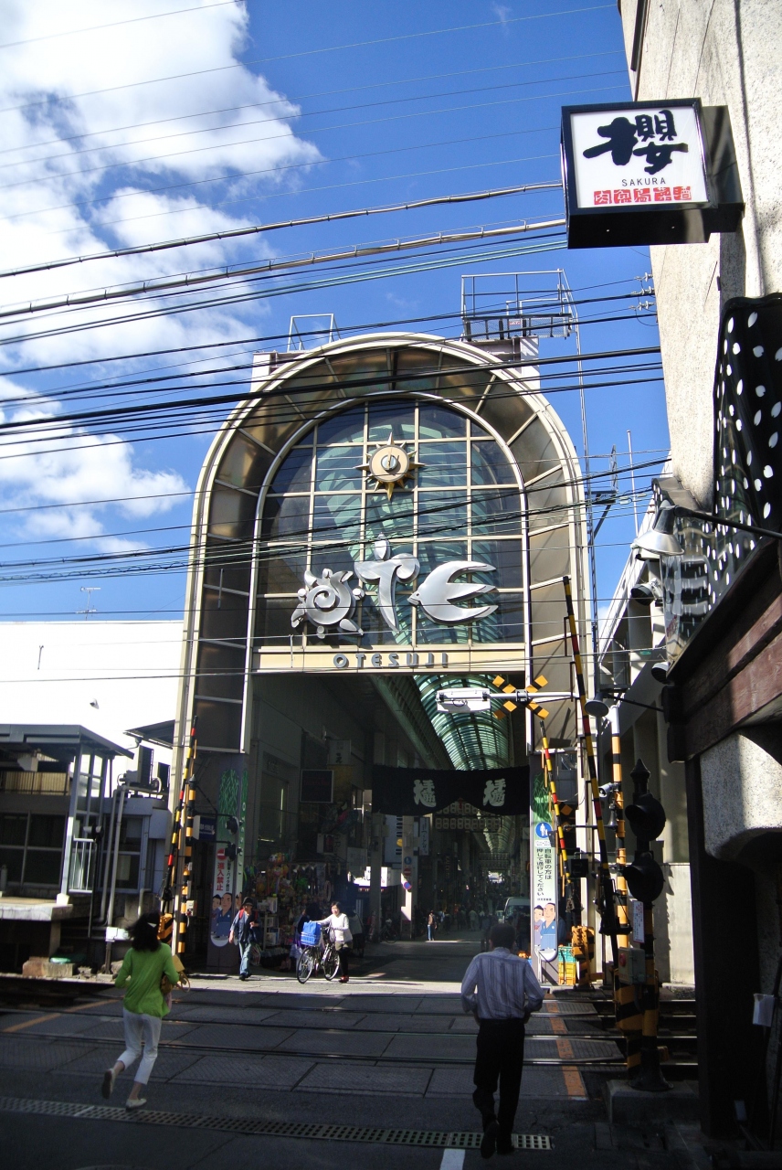 京阪電車の伏見桃山駅から西に向かってなだらかな下り道になっている商店街です。観光客もいますが、どちらかといえば地元向けのお店が多いようでした。朝十時ぐらいでしたが、人通りも多くて、とても活気がありました。アーケードがあるので雨の時も便利ですね。