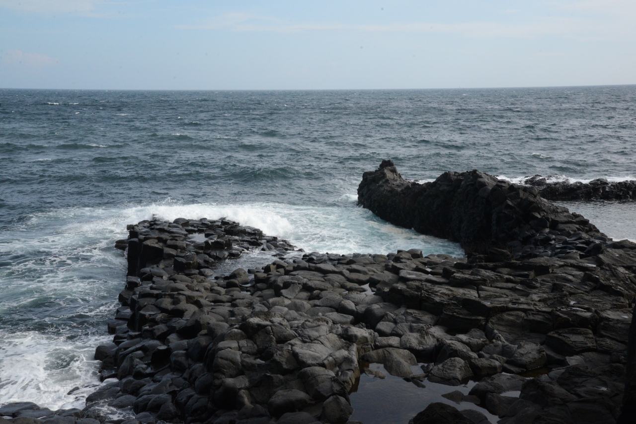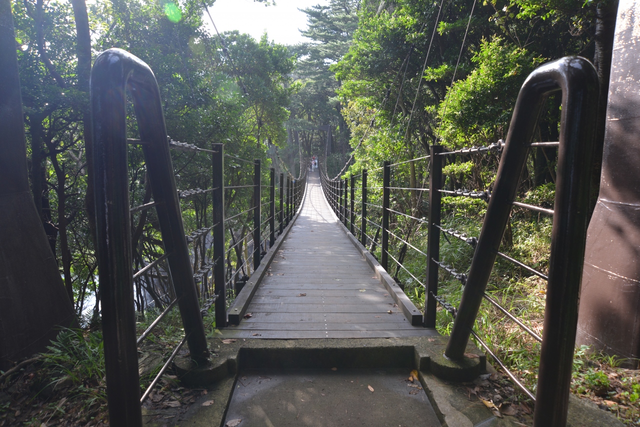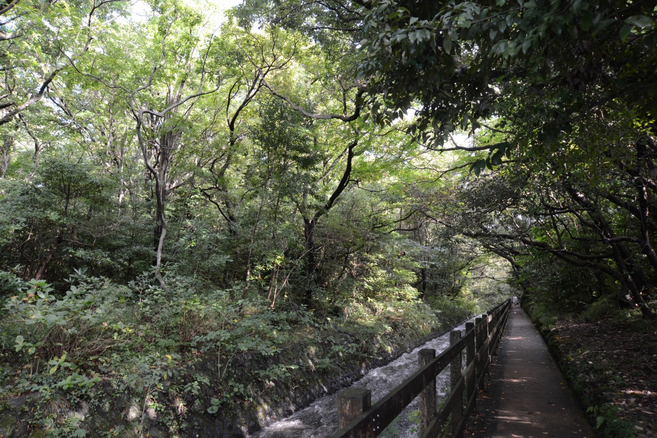 伊豆高原駅裏に駐車場がありますが、狭いです。そこから、川沿いをそって森の中を海に向かって下っていきます。10分ほど歩くと海が見えてきます。断崖絶壁の雄大な光景が広がります。林の中を歩くと、吊橋に出ます。吊橋は塗装やコンクリート劣化対策が施されていて安心して渡れます。揺れますが解放感あっていい気分です。吊橋の手前から海岸に降りることができます。