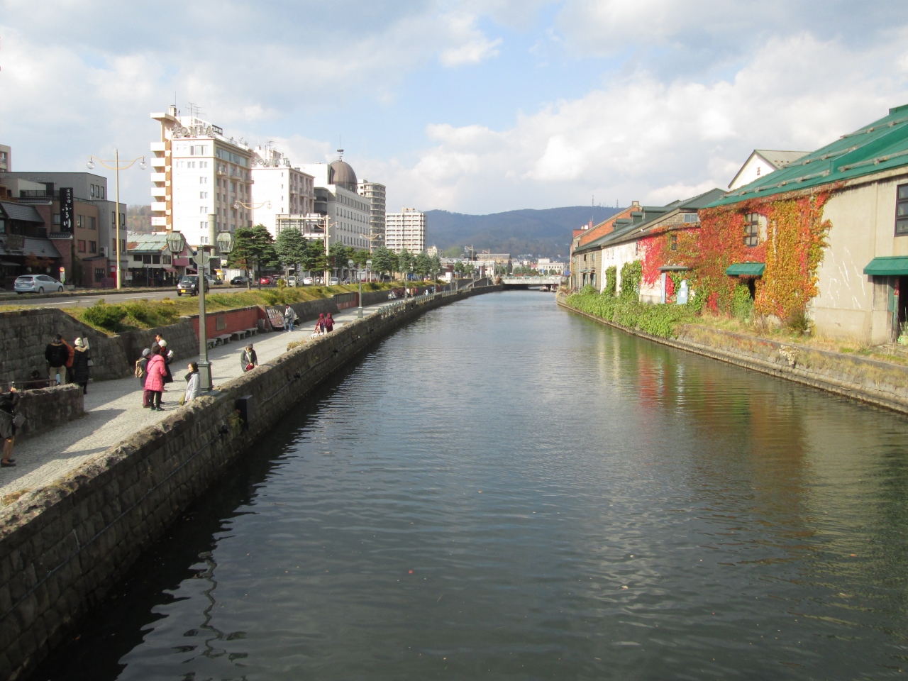小樽観光の定番です。港町小樽は大きな船を沖に泊め、はしけを使って荷揚げしていましたが、はしけが直接倉庫の近くまで入って行ける水路を作ったのがこの運河です。海岸の沖合いを埋立てて造られたため、直線ではなく緩やかに湾曲していました。